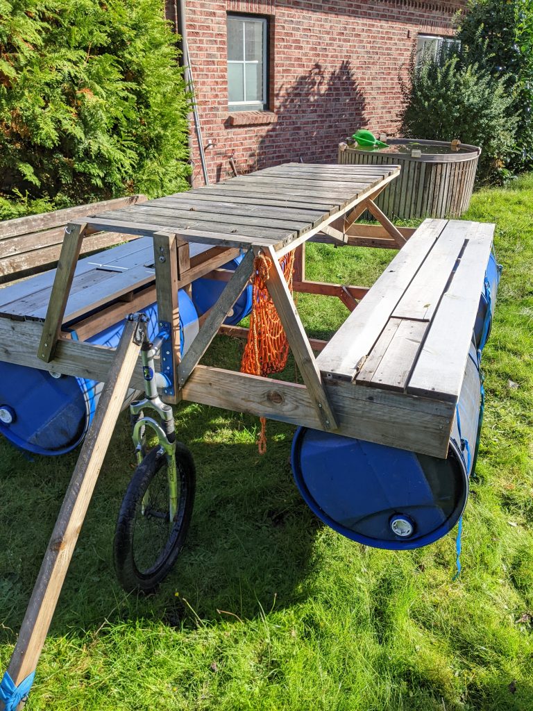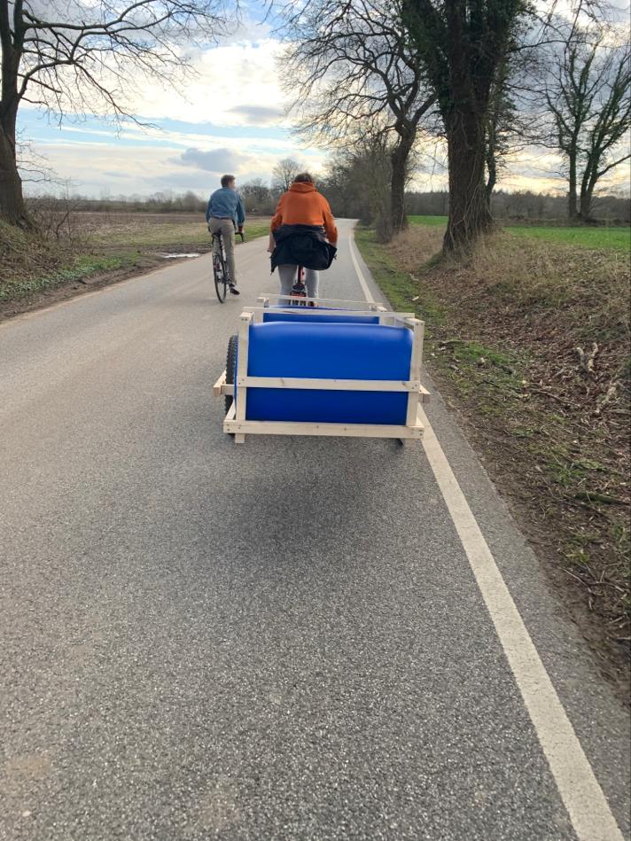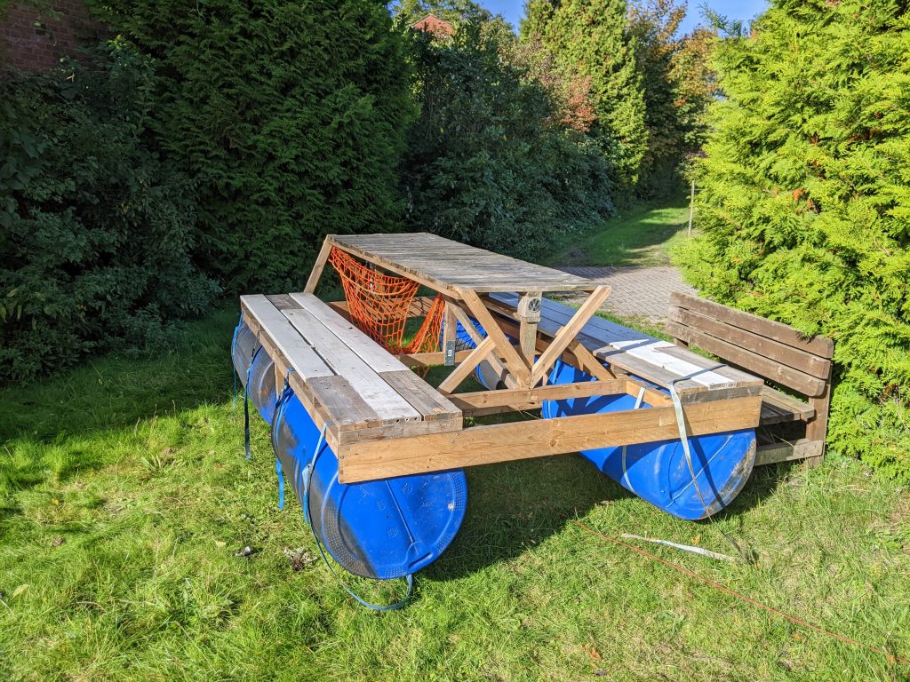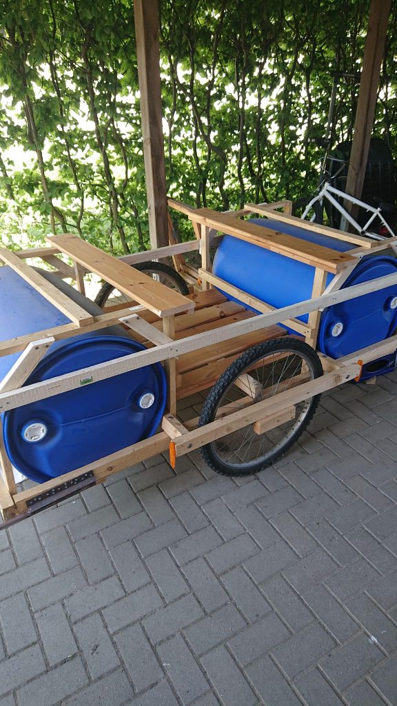 Eine Badeinsel, auf der man im Sommer die Wakenitz genießen kann, ist toll, ohne eigenen Anleger muss sie allerdings mobil sein. Als großer Fahrradanhänger funktioniert das tatsächlich wunderbar.