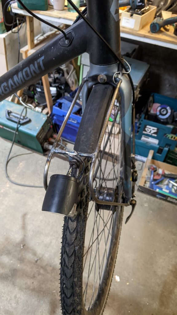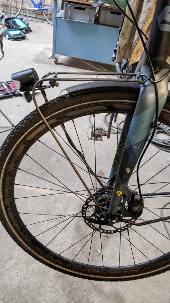 Die 2024 entstandene Cargofork an meinem Bike ermöglicht es aufgrund ihrer perfekt auf Euroboxen angepassten Größe fast alles zu transportieren.