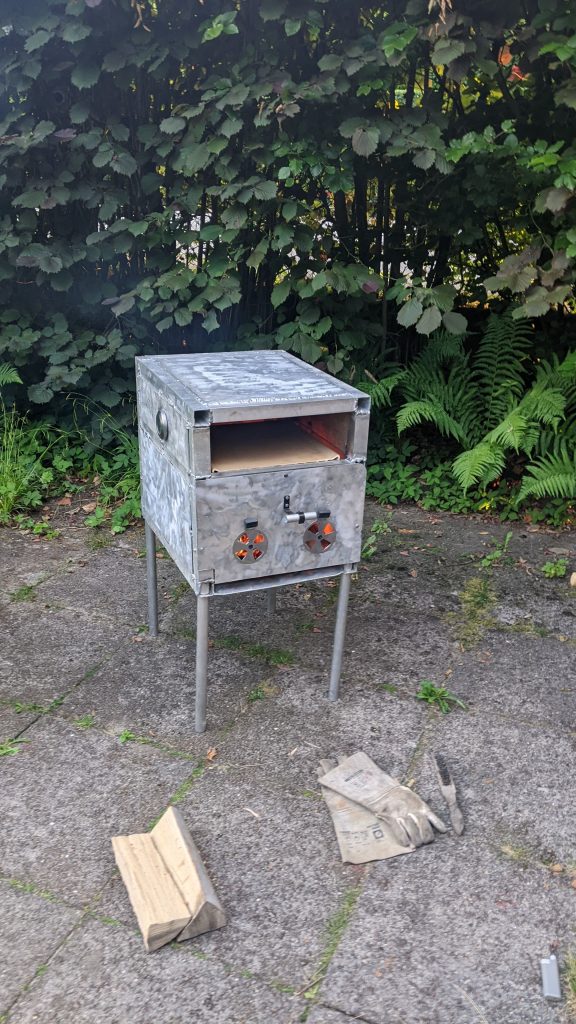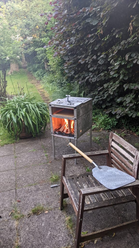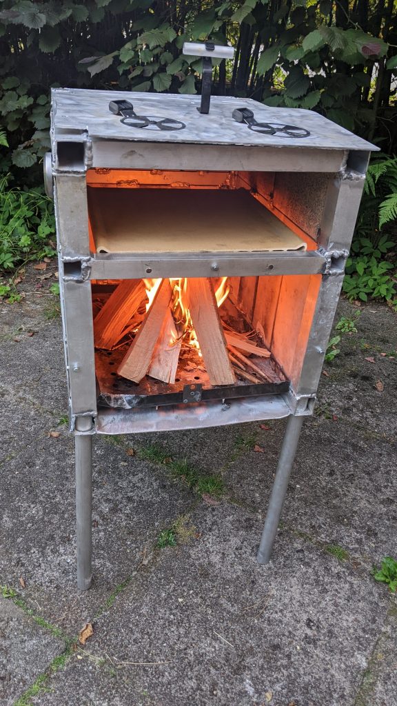 Ein Pizzaofen gebaut aus alten Straßenschildern und Schamottsteinen der eine traumhafte Pizza zaubert.
